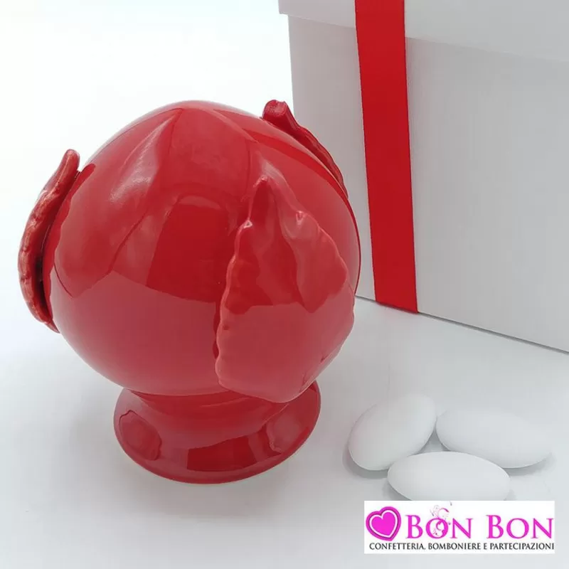 Bomboniera matrimonio pomo in porcellana rosso con astuccio.