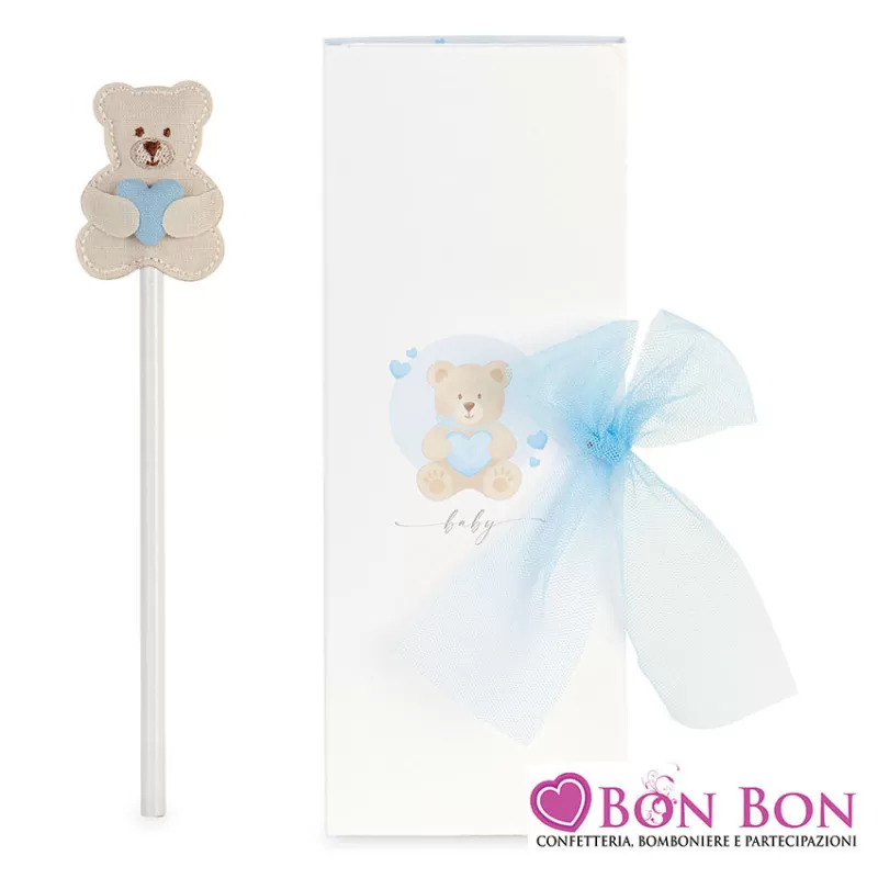 Bomboniera battesimo matita orsetto celeste