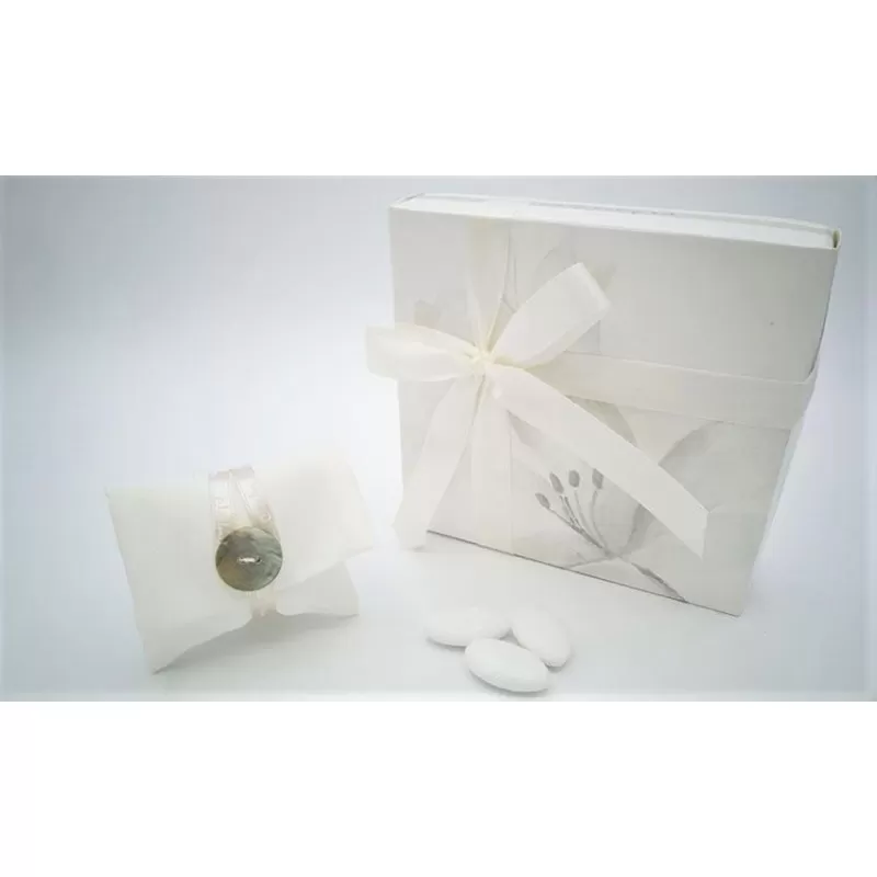 - 1 bomboniera confezionata già pronta con il nastro e il sacchetto come campione.