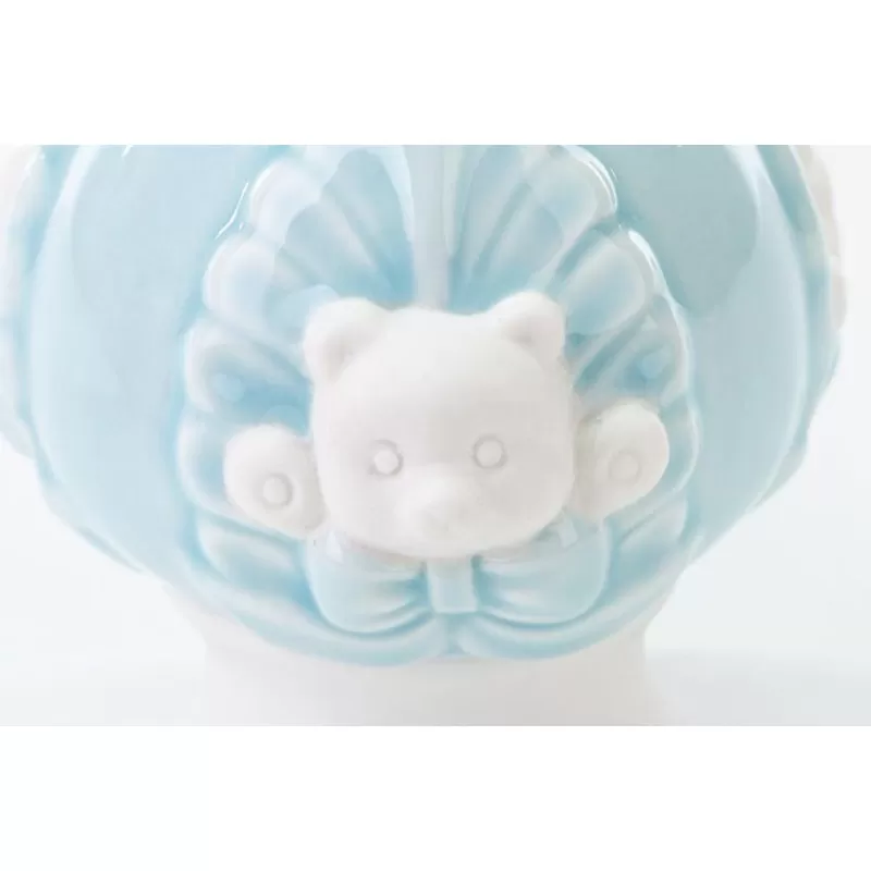 Bomboniera nascita e battesimo pomo con orsetto in porcellana celeste.