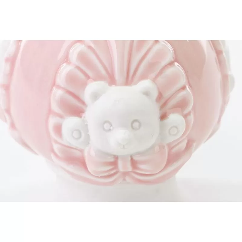 Bomboniera nascita e battesimo pomo con orsetto in porcellana rosa.