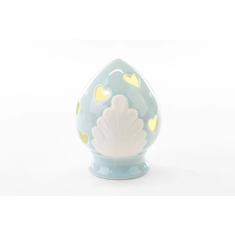 Bomboniera nascita e battesimo pomo in porcellana celeste con luce led senza astuccio.