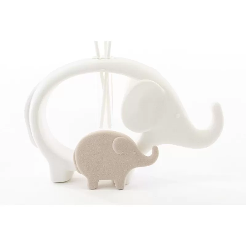 Bomboniera nascita e battesimo profumatore elefanti in porcellana bianco e tortora completa di astuccio panna e essenza le stelle.