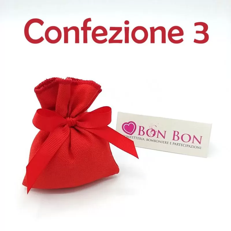 Possibilità di scegliere la confezione tra le 5 disponibili con sacchetto, scatola e 5 confetti all'interno avvolti nel velo.