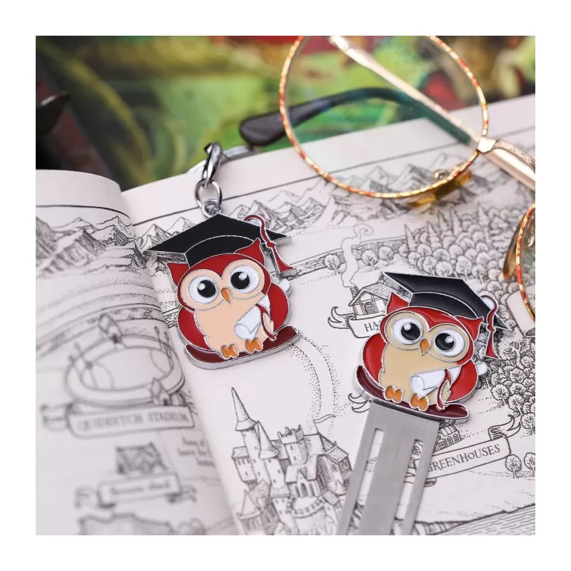 Bomboniera laurea segnalibro in metallo con gufo con tocco smaltato.