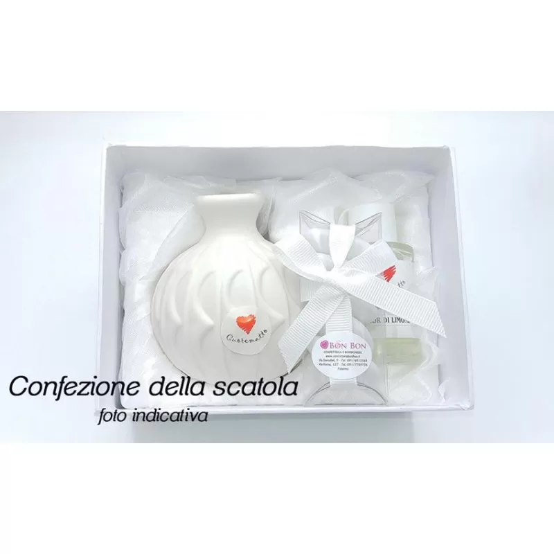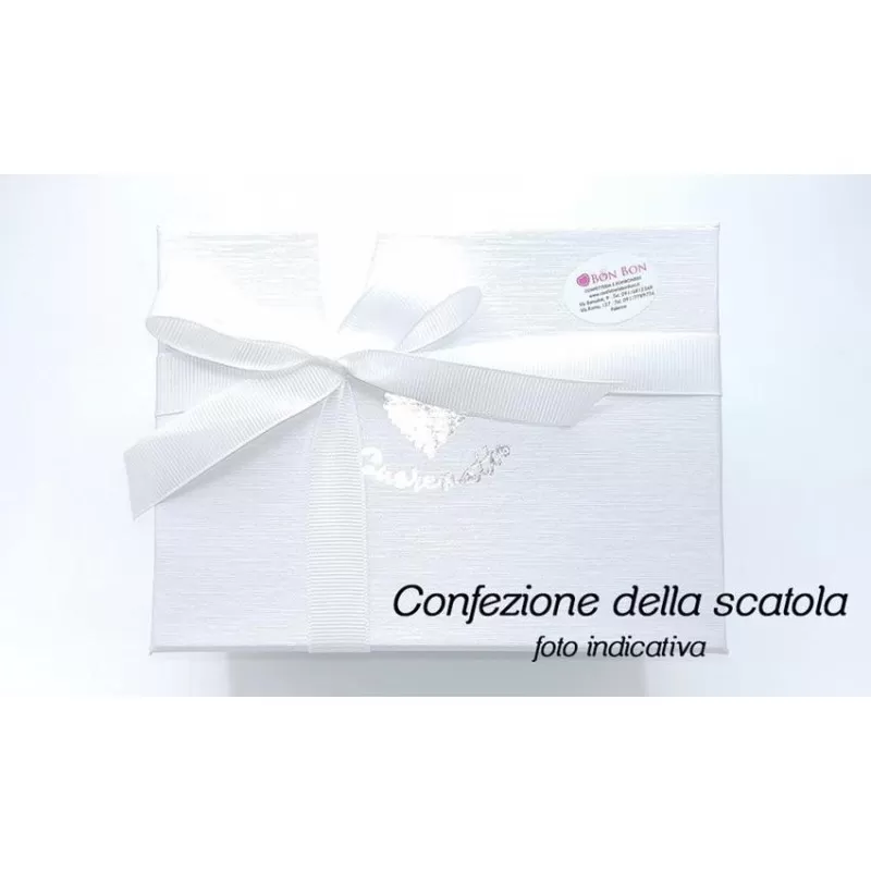 Scatola chiusa con nastro panna o possibilità di scegliere altro colore.