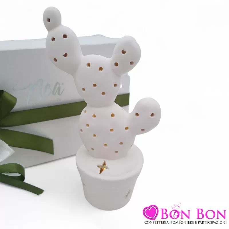Rendi il tuo matrimonio indimenticabile con la bomboniera perfetta che unisce eleganza, originalità e un tocco di luce magica. Scopri la nostra bomboniera a forma di piantina cactus in ceramica traforata bianca, dotata di una delicata luce LED che crea un'atmosfera romantica e incantevole. Ideale per celebrare il giorno più importante della tua vita, questa bomboniera rappresenta simbolicamente la resistenza e l'amore che si rafforza nel tempo.