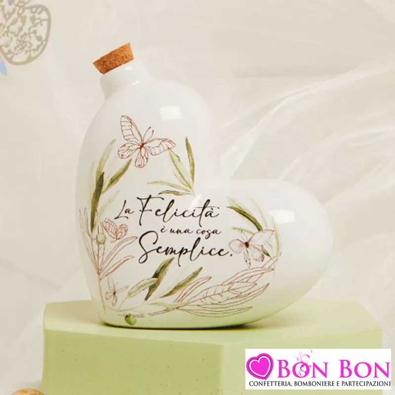 Bomboniere Matrimonio Enogastronomiche Claraluna 2025 - Oliere a Forma di Cuore in Porcellana Avorio
