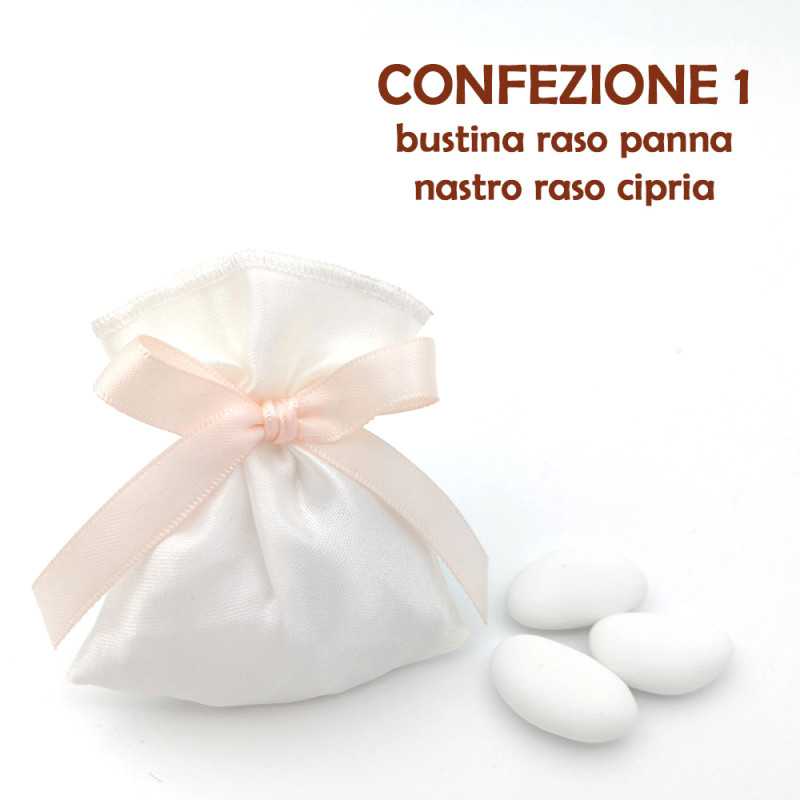 Opzioni di personalizzazione: Rendi ogni bomboniera unica con la possibilità di aggiungere un sacchetto contenente 5 confetti a scelta, avvolto in una scatola chiusa con un elegante fiocco del colore che preferisci. Inoltre, puoi personalizzare il biglietto