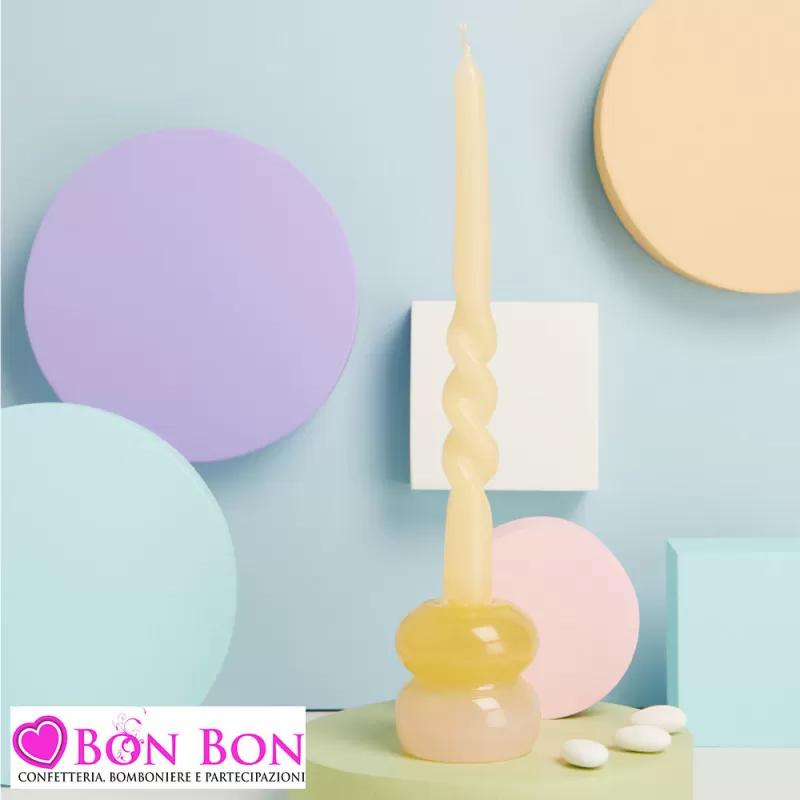 Bomboniere Matrimonio Originali Claraluna 2025 Candelabri in Vetro Soffiato Rosa e Giallo con Candela