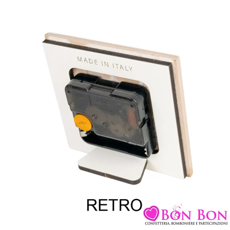 Bomboniere per Matrimonio Orologi con Piastrella in Porcellana Bianca e Base in Legno – Personalizzabili con Disegni e Confezione a Scelta