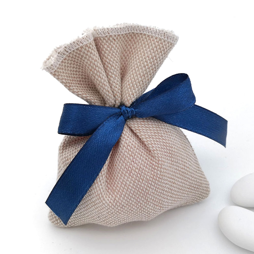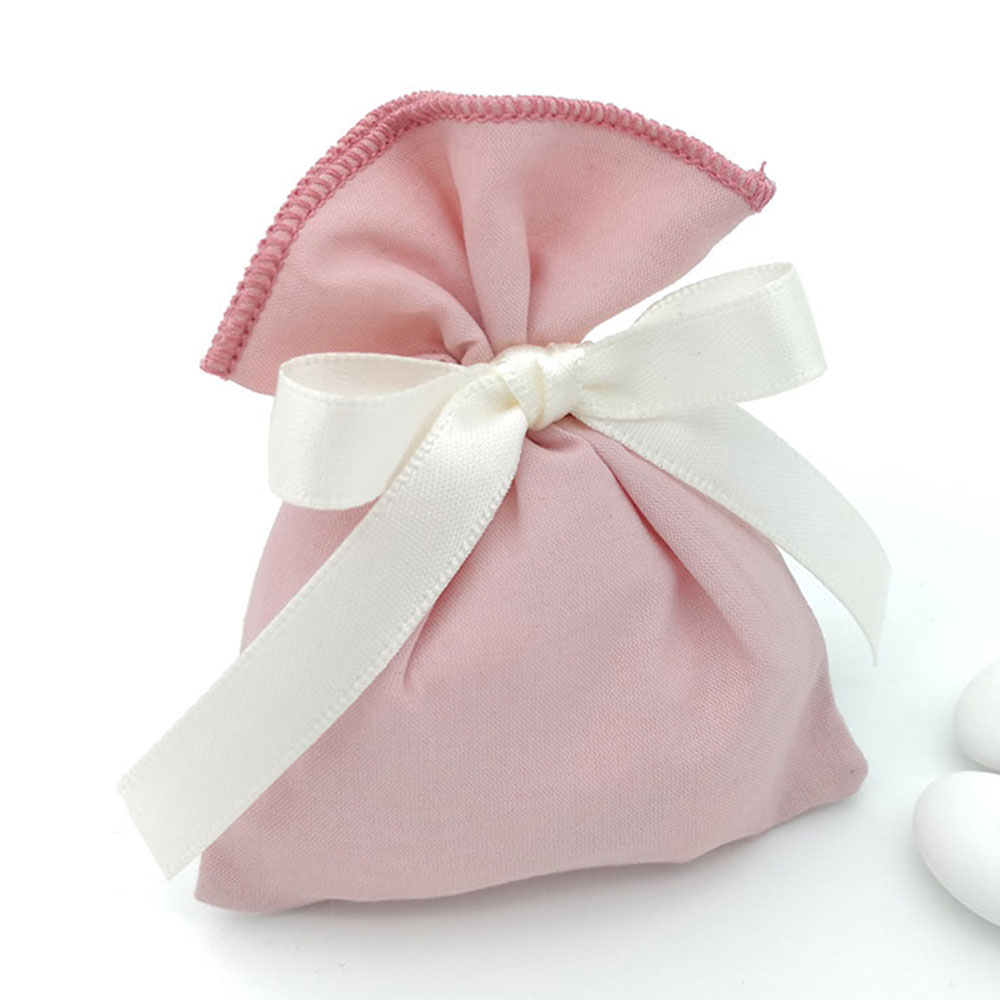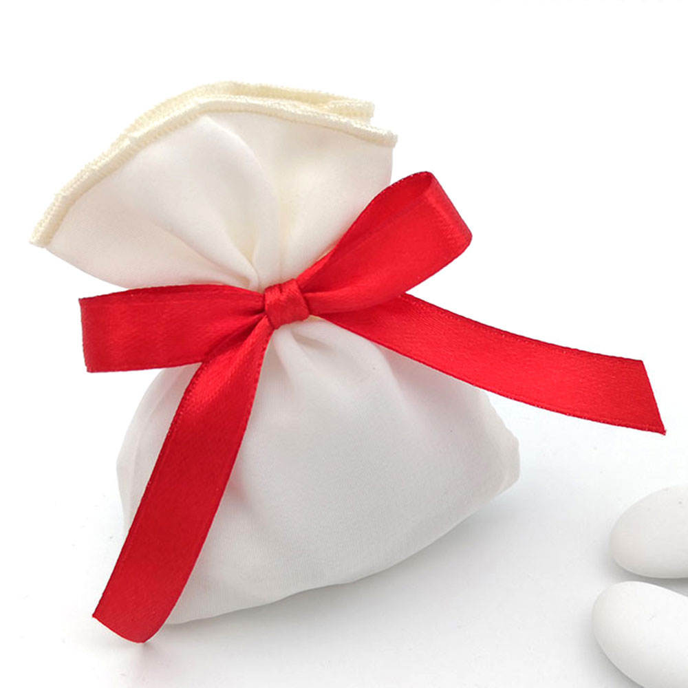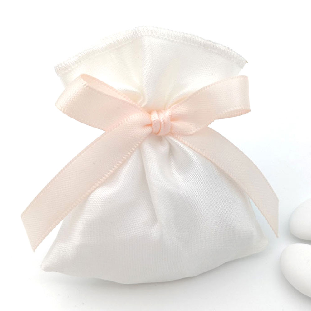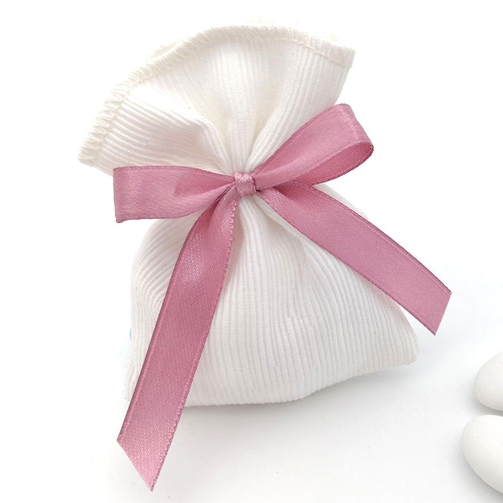 Sacchetto o portaconfetti trasparente con 5 confetti a scelta, fiocco nel colore desiderato.