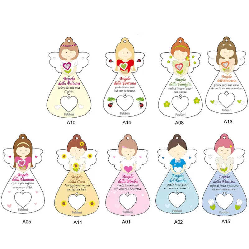 Bomboniera Appendino Chiama Angelo da Muro in Legno per Prima Comunione o Battesimo – Colori e Frasi Assortite Personalizzabili
