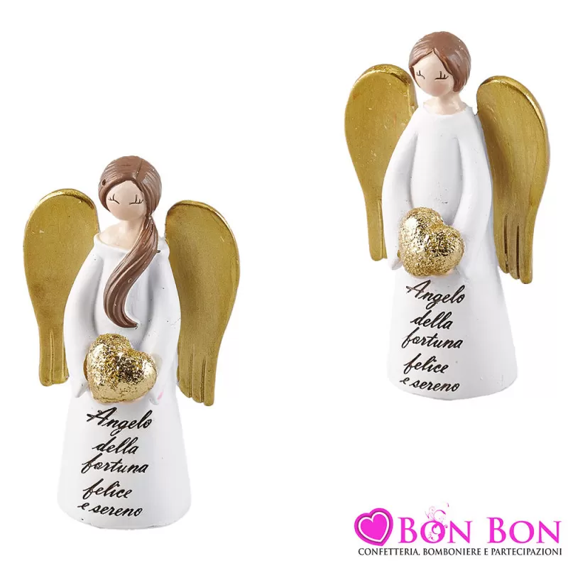 Bomboniera Prima Comunione Statuina Angelo della Fortuna in Resina con Cuore Dorato