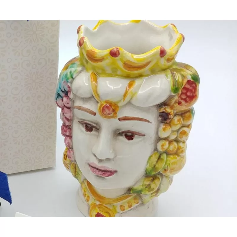 Bomboniera matrimonio testa di moro donna dipinta a mano in ceramica Caltagirone originale.