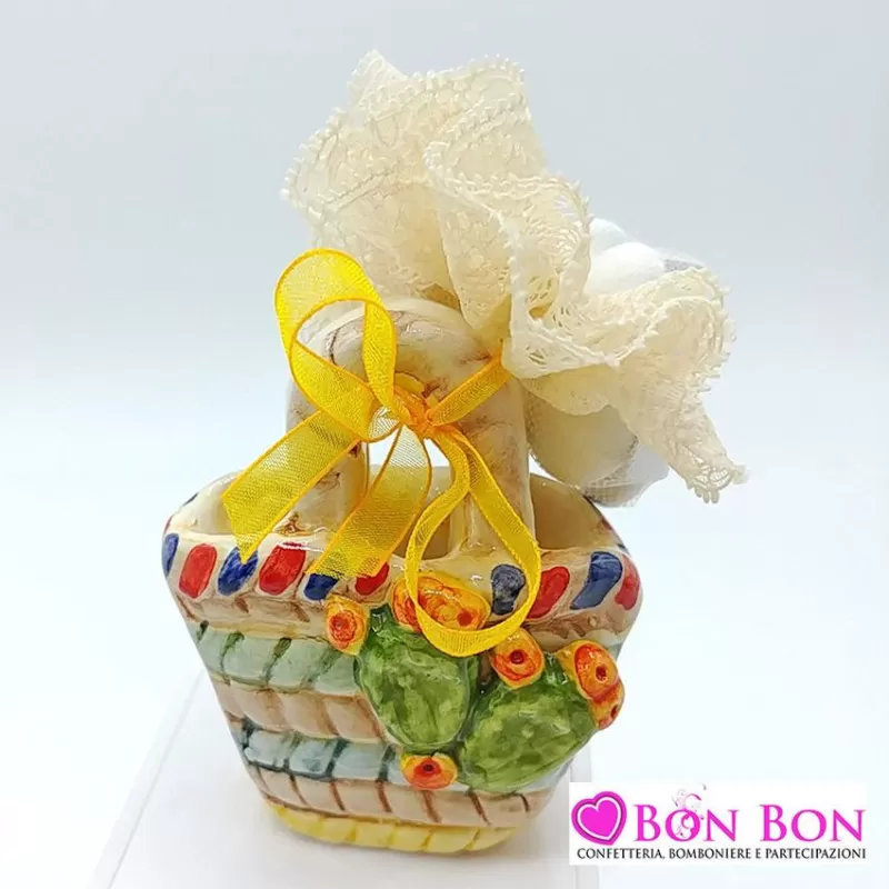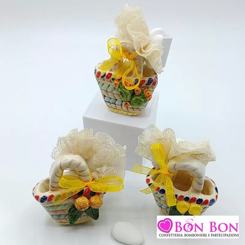 Bomboniera matrimonio tema siciliano coffa da appoggio in 3 modelli assortiti in porcellana dipinte a mano.