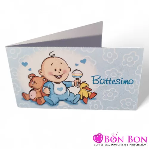 Confezione 20 bigliettini per battesimo con bimbo con orsetto