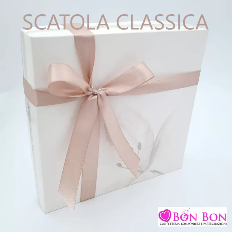 - Il nastro di raso per legare la scatola (non presente nella scatola fiocco o shopper)