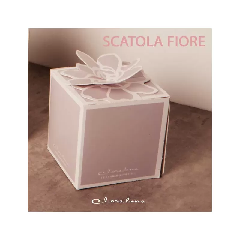 É possibile scegliere tra diverse varianti di scatole tra la Classica, la shopper traforata con luce led, la fiocco in colore tortora con disegno cuore, la scatola fiore in colore grigio e la nuova scatola botanica in oro con disegno floreale.