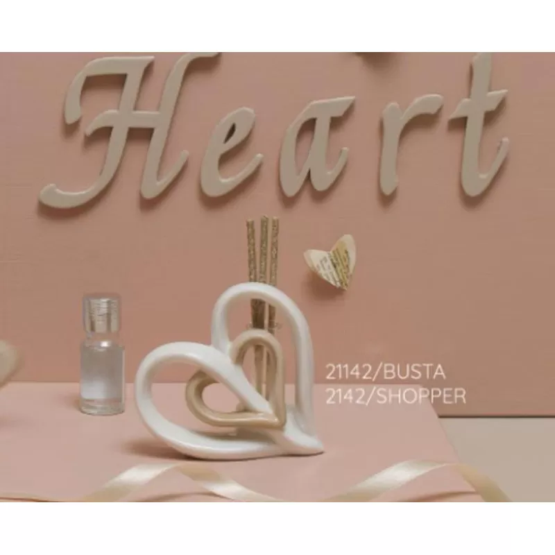 Bomboniera matrimonio claraluna 2021 profumatore cuori bianco e tortora in porcellana con kit essenza incluso.