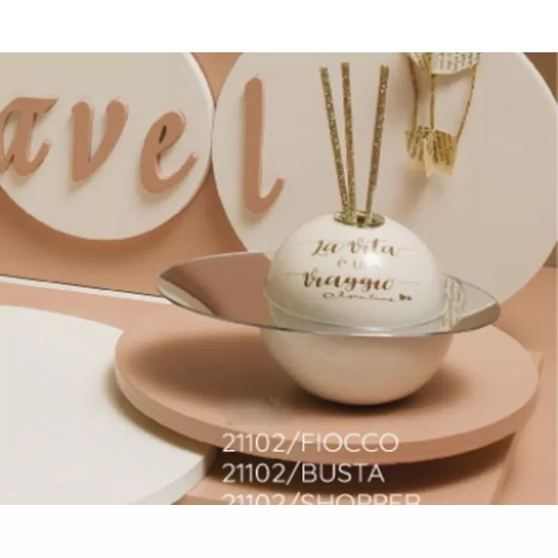 Bomboniera matrimonio claraluna 2021 profumatore pianeta in porcellana con frase "la vita è un viaggio", incluso di kit essenza e astuccio.