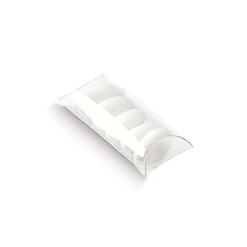 Possibilità di scegliere la confezione con scatola chiusa con nastro di colore a scelta e sacchetto con 5 confetti all'interno, o porta confetti trasparente.