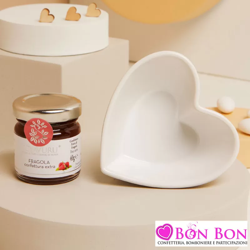 Bomboniera Matrimonio Enogastronomica Claraluna 2025: Ciotolina Cuore in Porcellana con Crema o Marmellata