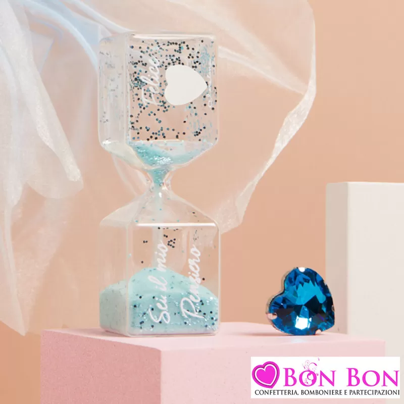 Bomboniere Battesimo Originali Claraluna 2025 Clessidre con Sabbia Glitterata rosa e celeste