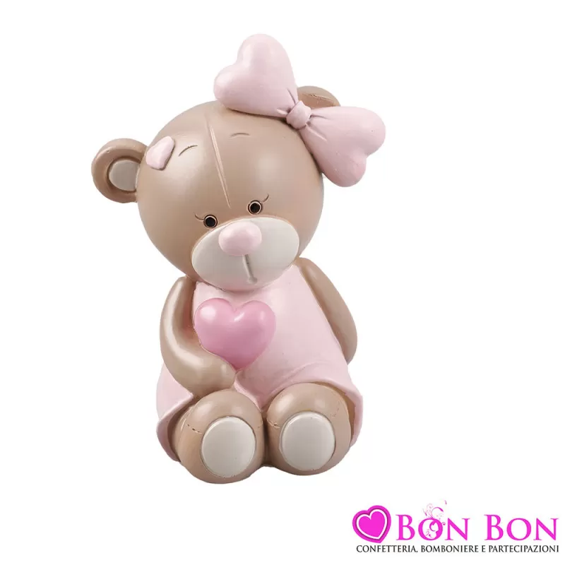Bomboniere Battesimo Salvadanaio Orsetti Rosa o Celesti in Resina Colorata