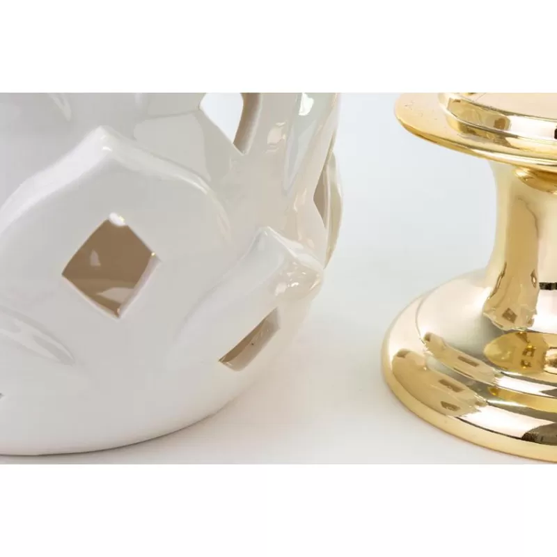 Bomboniera matrimonio pigna bianca con luce led e base dorata altezza 32 cm in porcellana senza scatola.