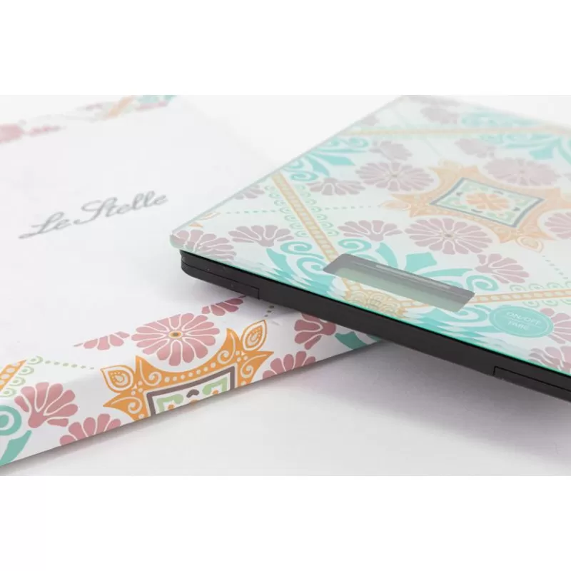 Bomboniera matrimonio utile 2022 bilancia aloha rettangolare con decoro maioliche in vetro max 5 kg.