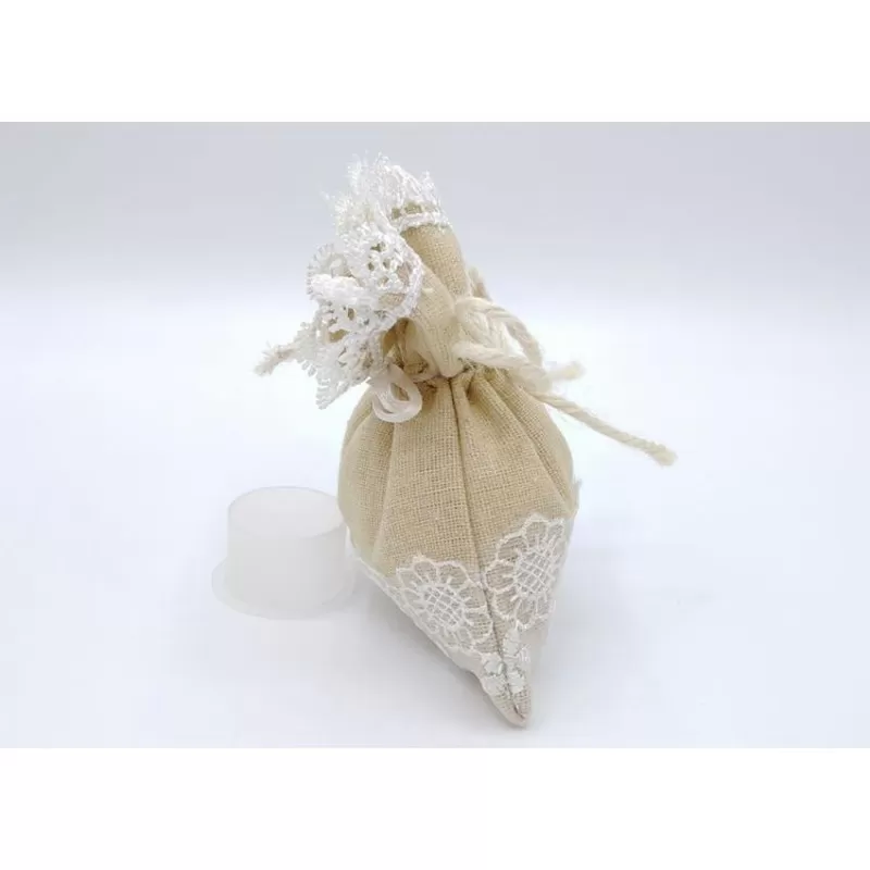 Sacchetto in tessuto tortora con pizzo bianco