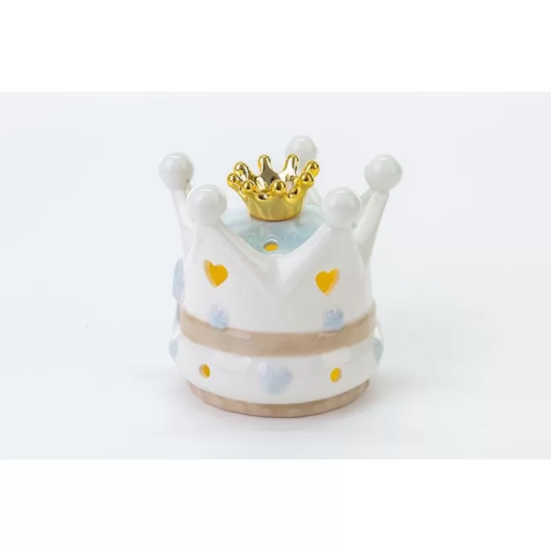 Bomboniera nascita e battesimo corona celeste in porcellana con luce led senza scatola.