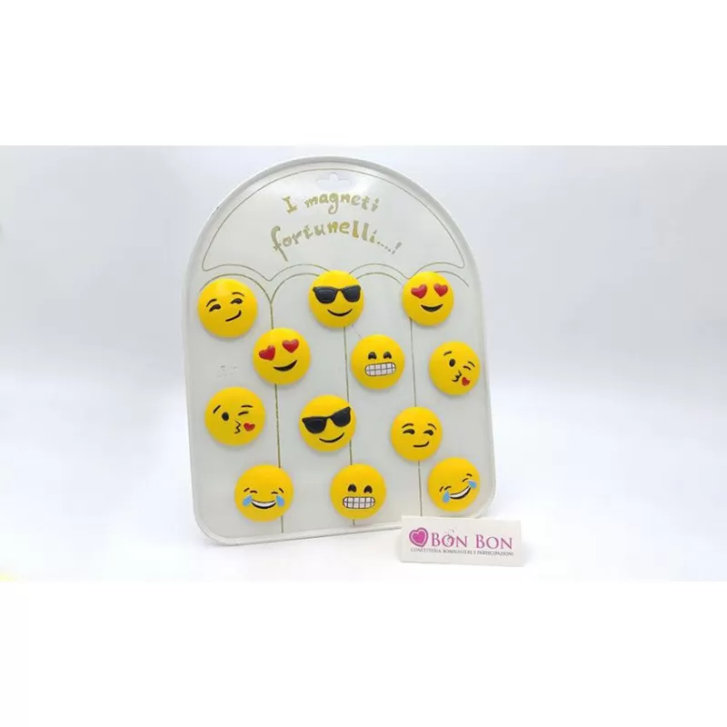 Bomboniera nascita e battesimo in offerta magnete emoticon 6 faccine assortite confezionato con scatolina trasparente con 5 confetti a scelta.
