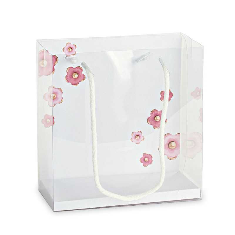 Bomboniere Battesimo Bimba: Angioletto Rosa Svuotatasche con Ghirlanda di Fiori in Porcellana con Shopper