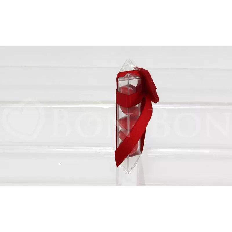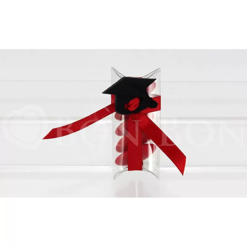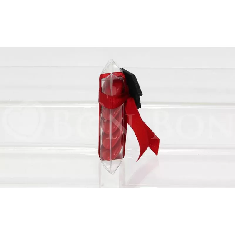 Possibilità di scegliere il colore del tocco tra rosso e nero. I confetti sono in totale 5 pz di colore rosso, gusto assortito.