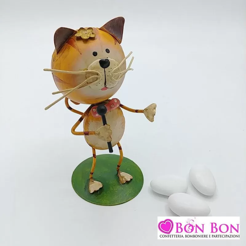 Bomboniera in offerta gatto cantante in metallo con scatola trasparente.