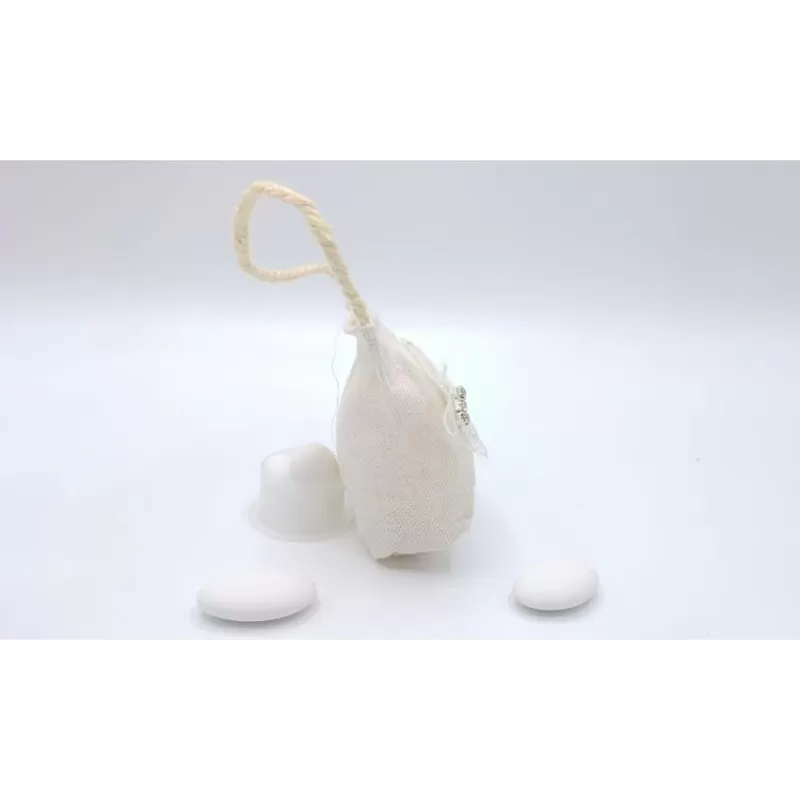 Sacchetto tessuto a forma di borsetta con farfalla bianca e strass