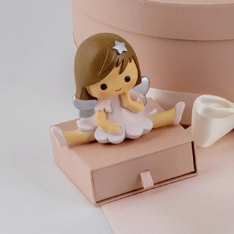 Ballerina media in resina da poggio con stelline argento, 3 soggetti assortiti, bomboniera Prima Comunione personalizzabile con scatolina, confetti e bigliettino.