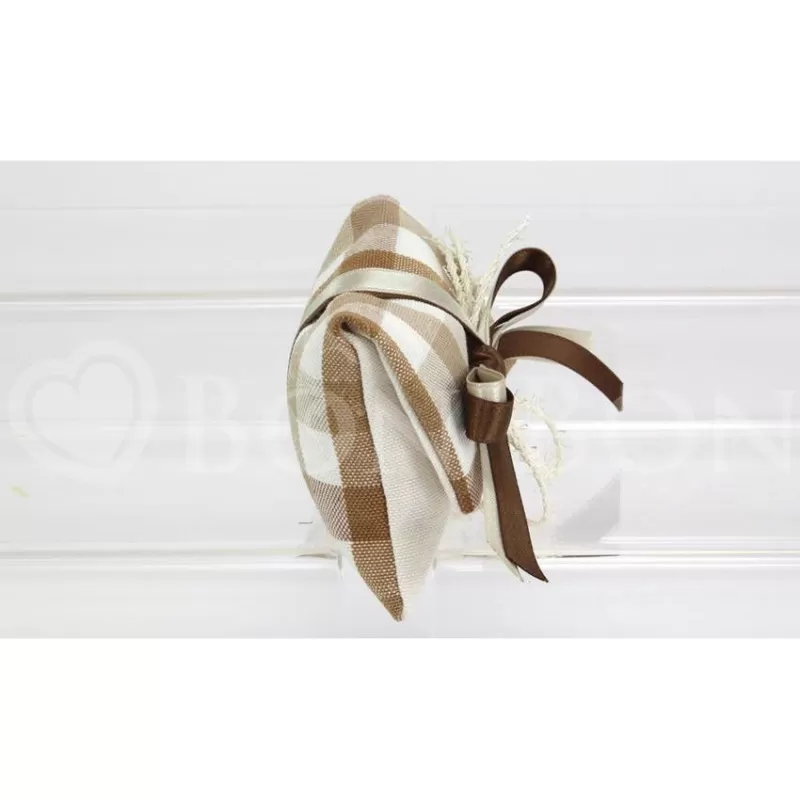 Busta lettera piccola country ecrù confezionato con 5 confetti a scelta avvolti nel velo.