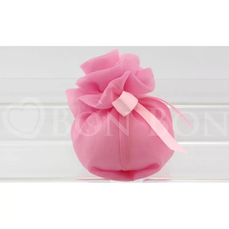 Fagotto organza grande rosa con rosa confezionato con 5 confetti a scelta avvolti nel velo.