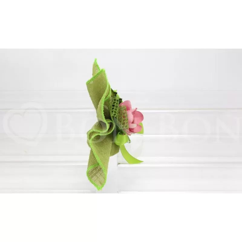 Fazzoletto maiori verde confezionato con 5 confetti a scelta avvolti nel velo.