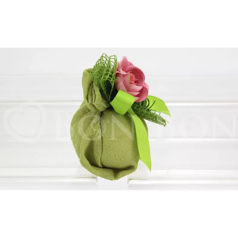 Fagotto maiori verde confezionato con 5 confetti a scelta avvolti nel velo.