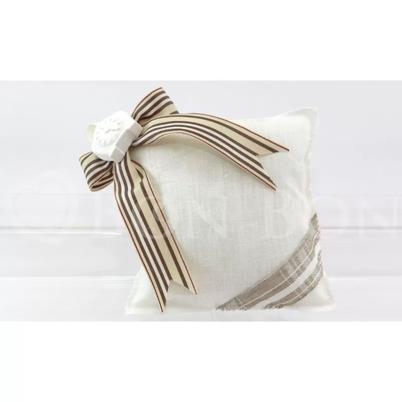 Cuscino quadrato grande sweet kitchen confezionato con 5 confetti a scelta avvolti nel velo.