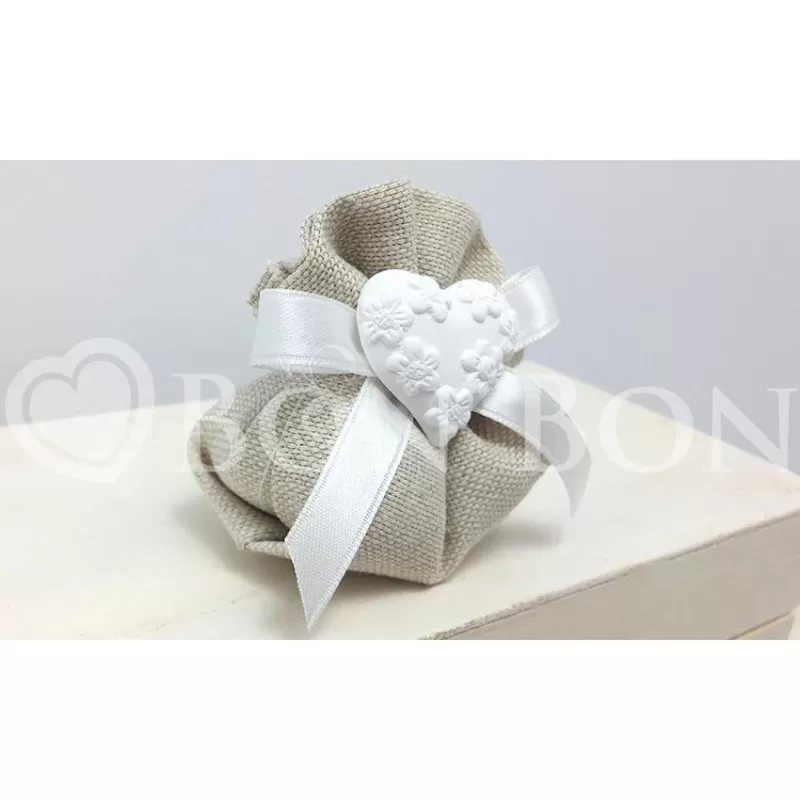 Sacchetto Matrimonio Fagotto Piccolo con Gessetto Cuore confezionato con 5 confetti a scelta avvolti nel velo.