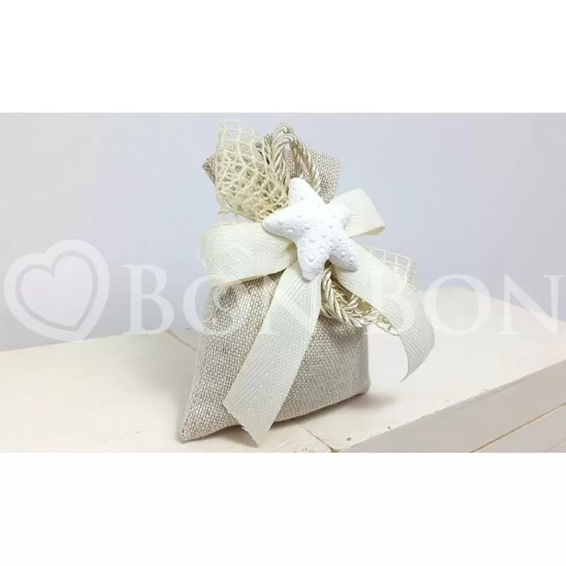Sacchetto Matrimonio Sacchetto Piccolo con Gessetto Stella Marina confezionata con 5 confetti a scelta avvolti nel velo.