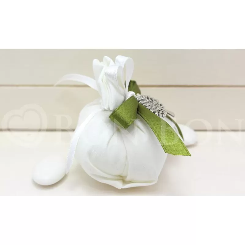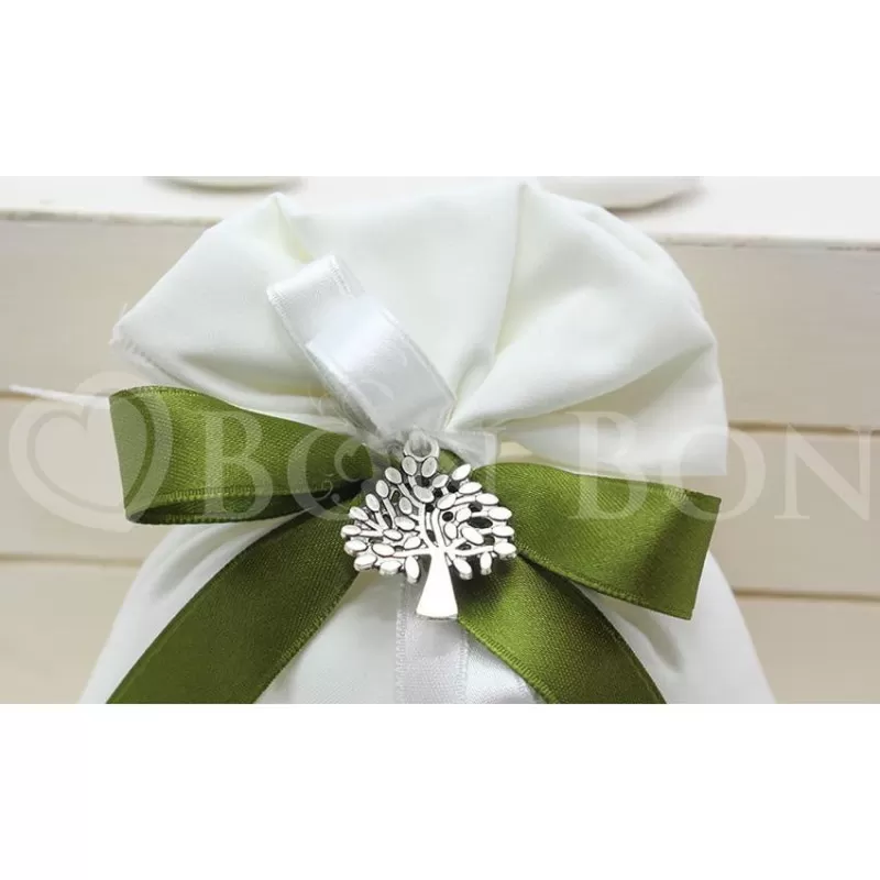 Non dimenticare di salvare la tua personalizzazione per poter riempire il carrelloMini fagotto in cotone vellutato avorio con ciondolo in metallo " Albero della Vita"