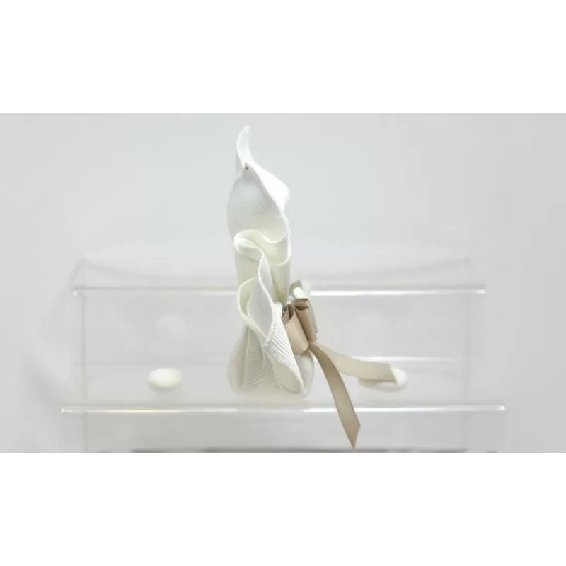 Fazzoletto ottomano avorio con bottone confezionato con 5 confetti a scelta avvolti nel velo.