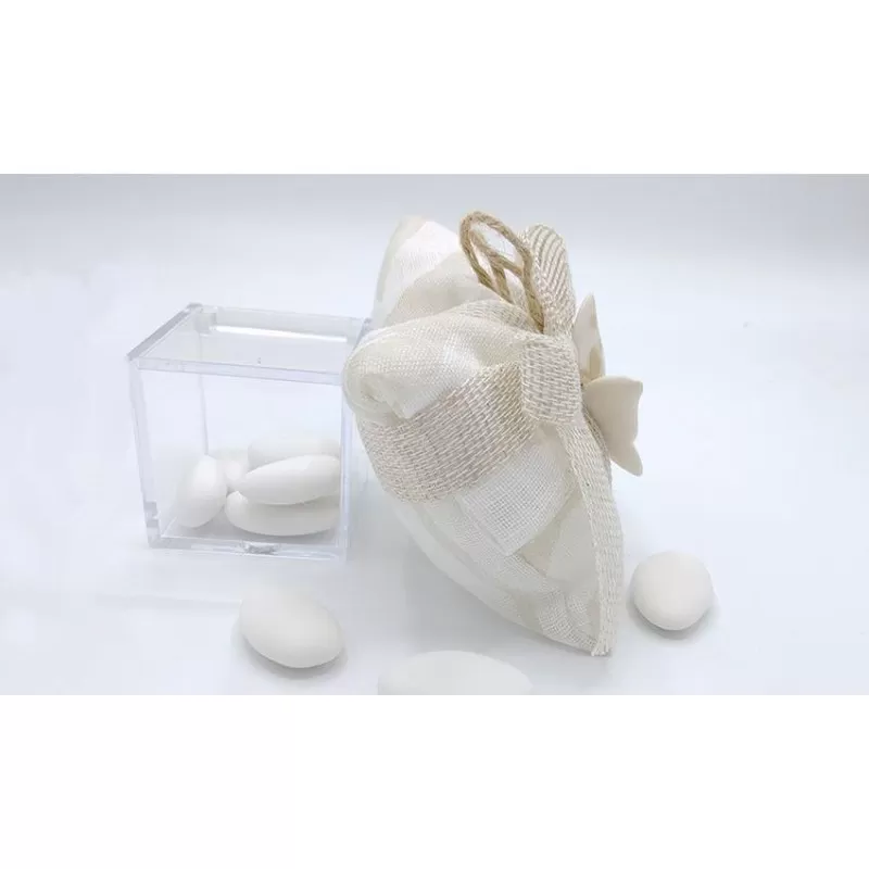 Sacchetto matrimonio busta lettera rettangolare grande linea cordova confezionato con 5 confetti a scelta e applicazione farfalla ceramica