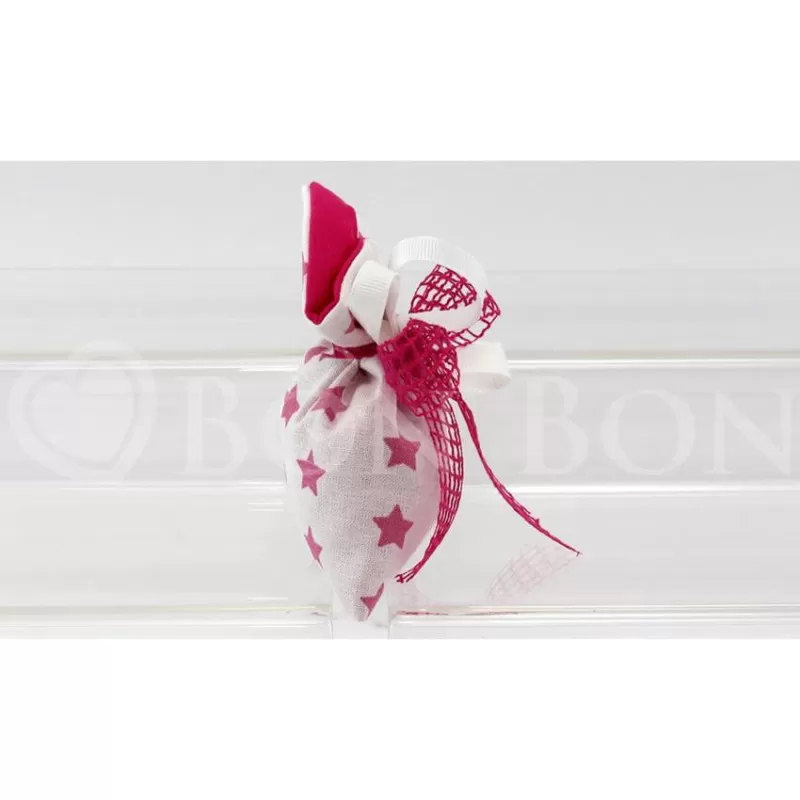 Busta incrocio stellina rosa confezionata con 5 confetti a scelta avvolti nel velo.